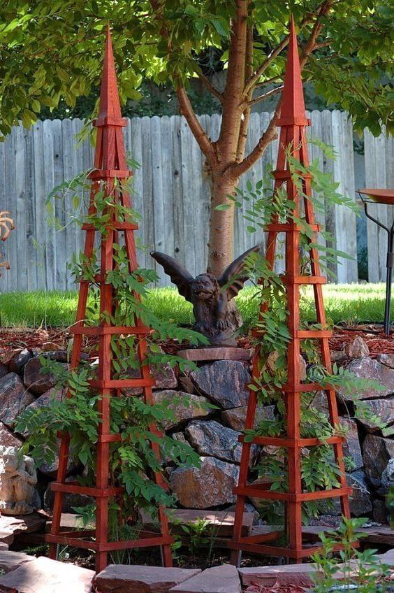 Для традиционных зеленых насаждений тутор может быть просто опорой. Но даже без флористического сопровождения он всегда привлечет внимание своей яркостью и элегантностью.
