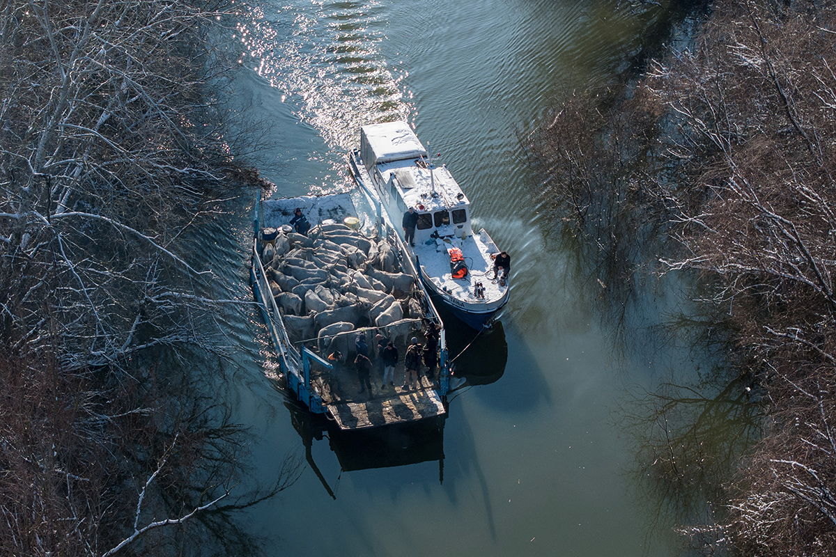 Внезапное повышение уровня воды в Дунае в конце декабря, отсутствие баржи, которую обычно использовали для перевозки животных, а также снегопад и минусовые температуры привели к тому, что животные оказались на мели и остались без еды.