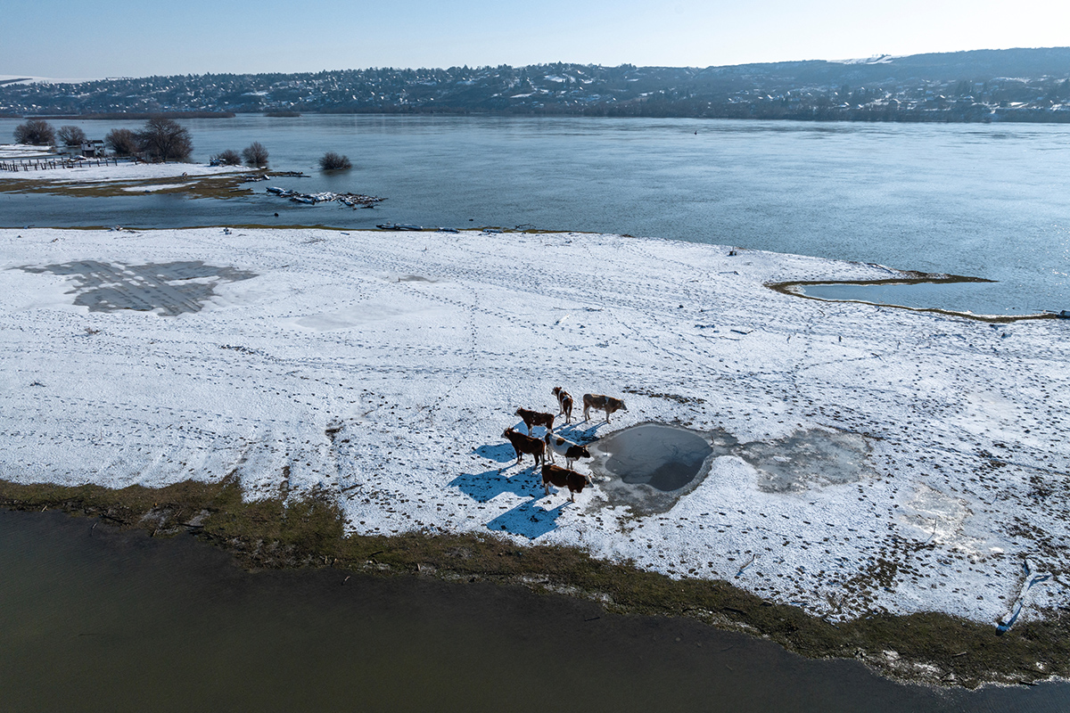 Животных обычно оставляют пастись весной и летом на острове Крчединская Ада на Дунае, примерно в 50 км к северу от Белграда. В этом году необычно теплая погода, продолжавшаяся до начала зимы, позволила им остаться там подольше.