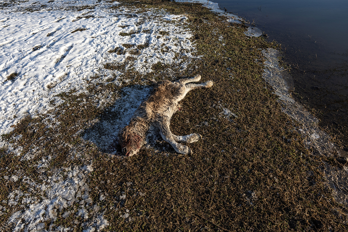 Это произошло из-за внезапного повышения уровня воды, отсутствия баржи для перевозки животных, снегопада и минусовых температур.