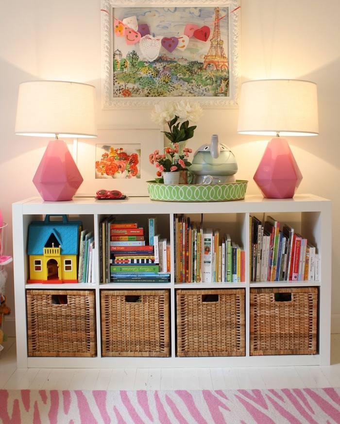 Мебель с хранением. Некоторая мебель для детских комнат имеет встроенные отделения для хранения игрушек. К примеру, кровати со встроенными ящиками или комоды с отдельными отделениями для игрушек.