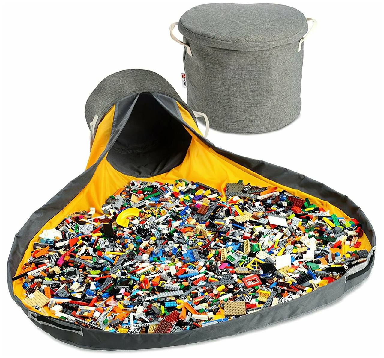 Мягкие сумки или корзины. Мягкие сумки или корзины могут использоваться для хранения мягких игрушек, таких как плюшевые мишки или куклы. Они легко перемещаются и могут быть удобны для игры во дворе или в других местах.