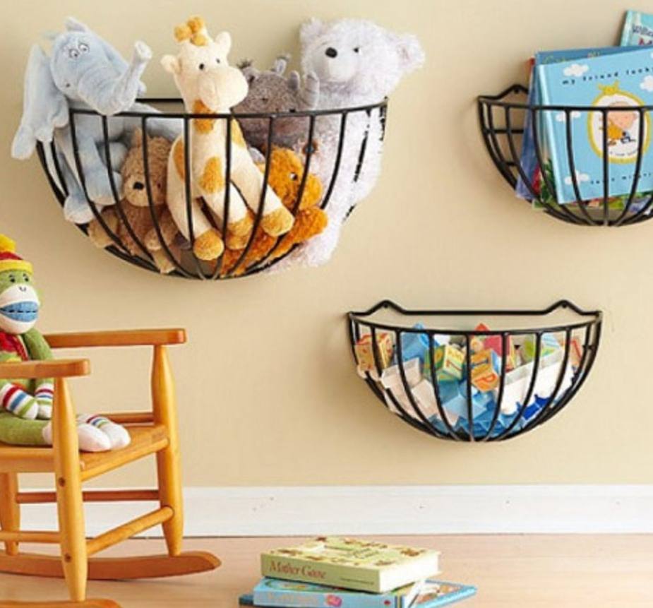Хранение на стене. Некоторые игрушки можно хранить на стене. Например, крючки или корзины на стене могут быть использованы для хранения шариков, самолетиков или других игрушек.