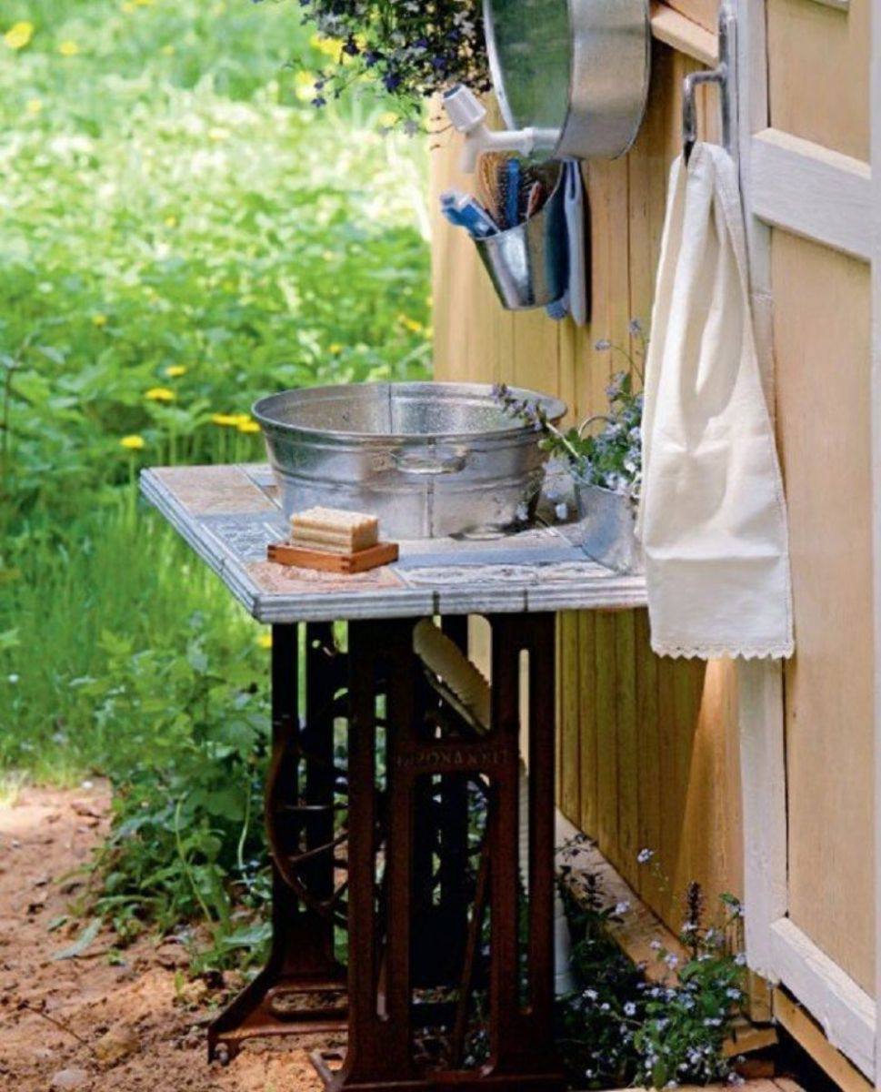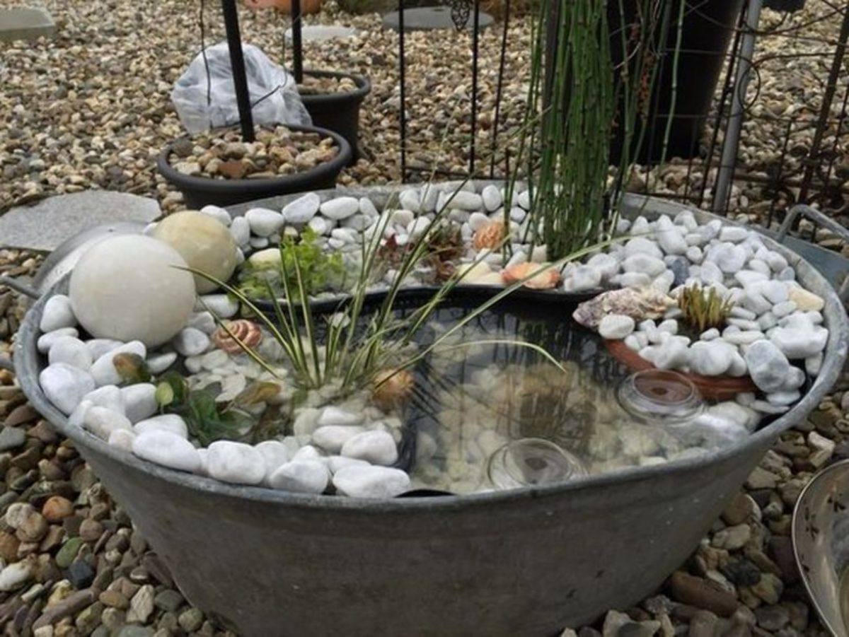 Еще один интересный способ использования оцинкованной утвари - это создание водных объектов в саду. Старые корыта или тазы могут превратиться в миниатюрные водоемы, в которых можно выращивать водные растения или даже разводить маленьких рыбок. Добавьте камни, гальку и небольшие фонтанчики, чтобы создать уютный уголок с водой, который будет приятно освежать в жаркие дни.
