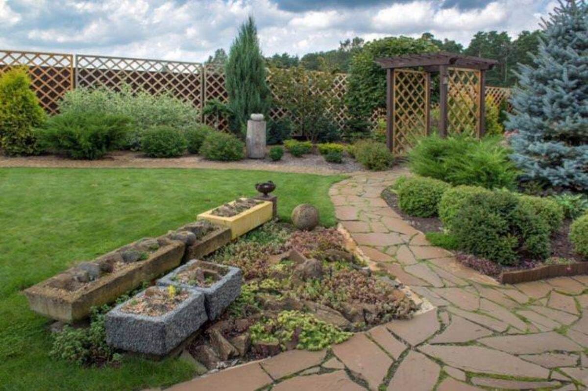 Кам'яні доріжки надають ділянці природного вигляду. Вони ідеально пасують до садів у стилі кантрі чи еко-дизайну. Дикий камінь виглядає особливо ефектно, але варто пам'ятати, що нерівності можуть бути незручними для ходьби.